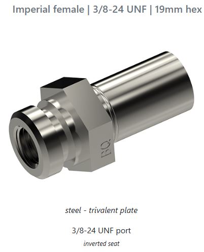 BQ FEMALE RIGID 7/16-24Imperial female | 7/16-24 UNS | 16mm hex | alt HFIF35mount type Clipbend straighthex size 16 mmoverall length 45 mmMFG: BRAKEQUIPHFIF09 Details...