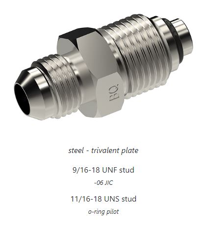 Bump tube adapter | 9/16-18 UNF stud (-06 JIC) | 11/16-18 UNS o-ring pilot