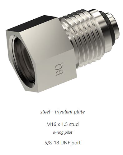 Bump tube adapter | 5/8-18 UNF port | M16 x 1.5 o-ring pilot