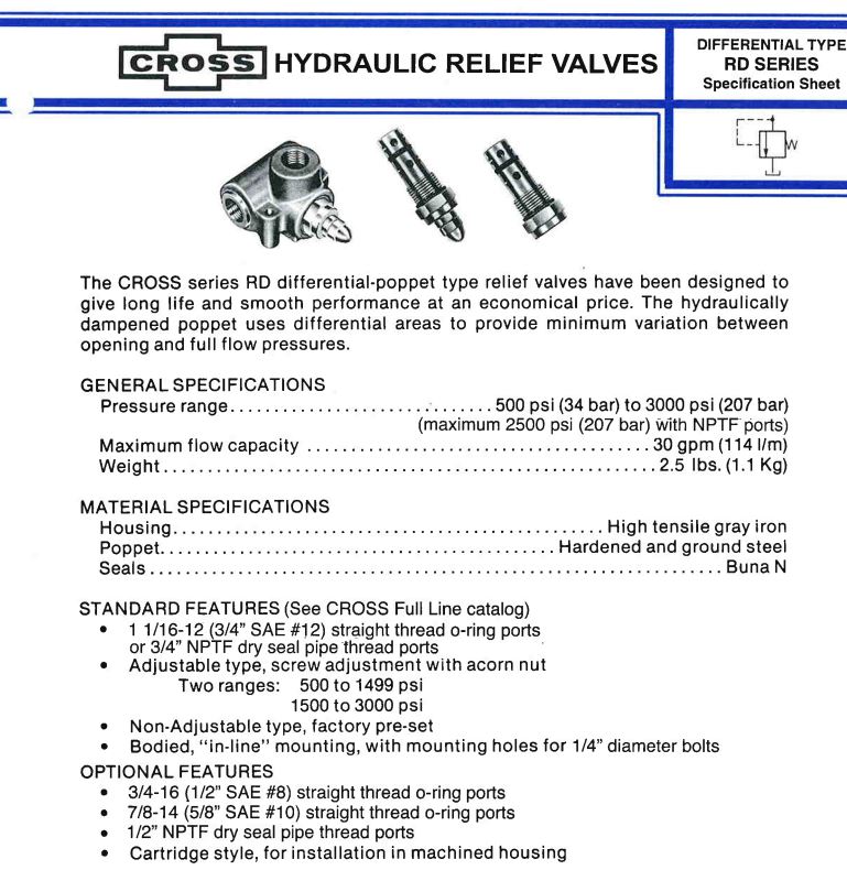 CROSS VALVE HYDRAULIC RELIEF 3/4" FNPT