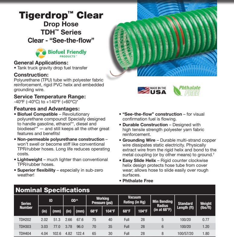 TDH404 4" GREEN/CLEAR DROP HOSE