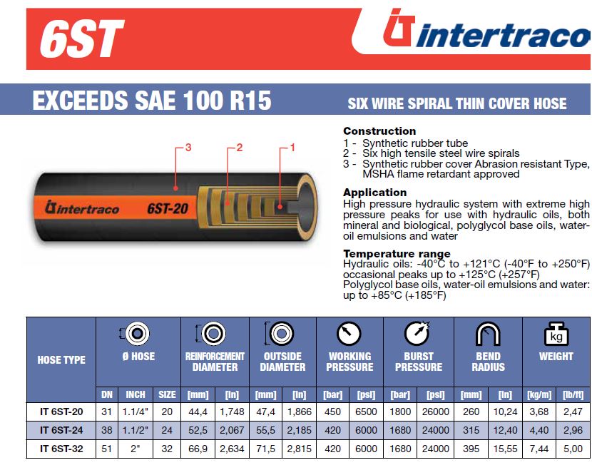 INTERTRACO 6ST-20 HOSE 100R15 20 IT 6000 PSI