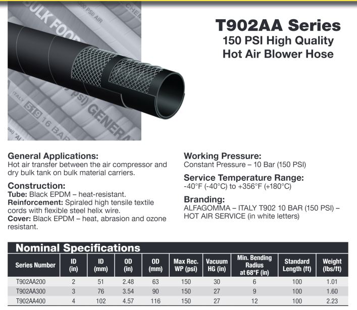 KURIYAMA T902AA300 3" HOT AIR BLOWER HOSE